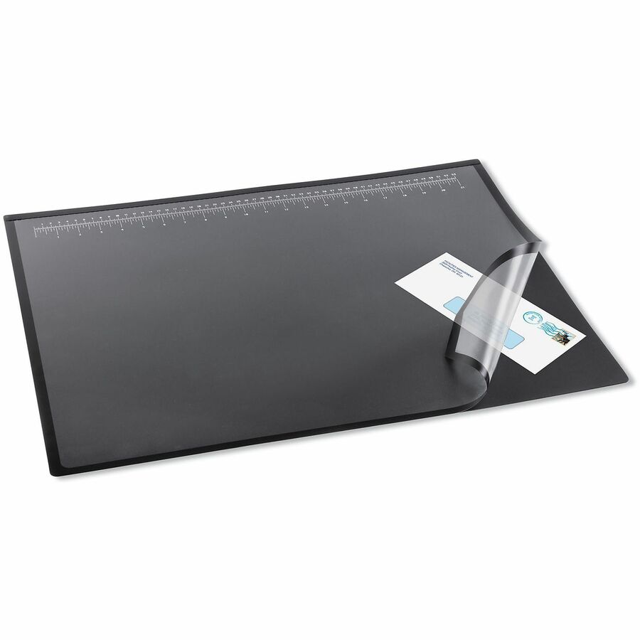 Logo Pad Lift-Top Desk Organizer features a clear, nonglare overlay to showcase agendas, photos, notes, reference lists and memos for quick reference. Clear top overlay provides a printed Imperial and metric ruler along with a protractor for angle measure. Logo pad has a nonslip recycled rubber base that includes post-consumer recycled material. Store documents, photos or other reference materials between layers to keep desktop organized. |