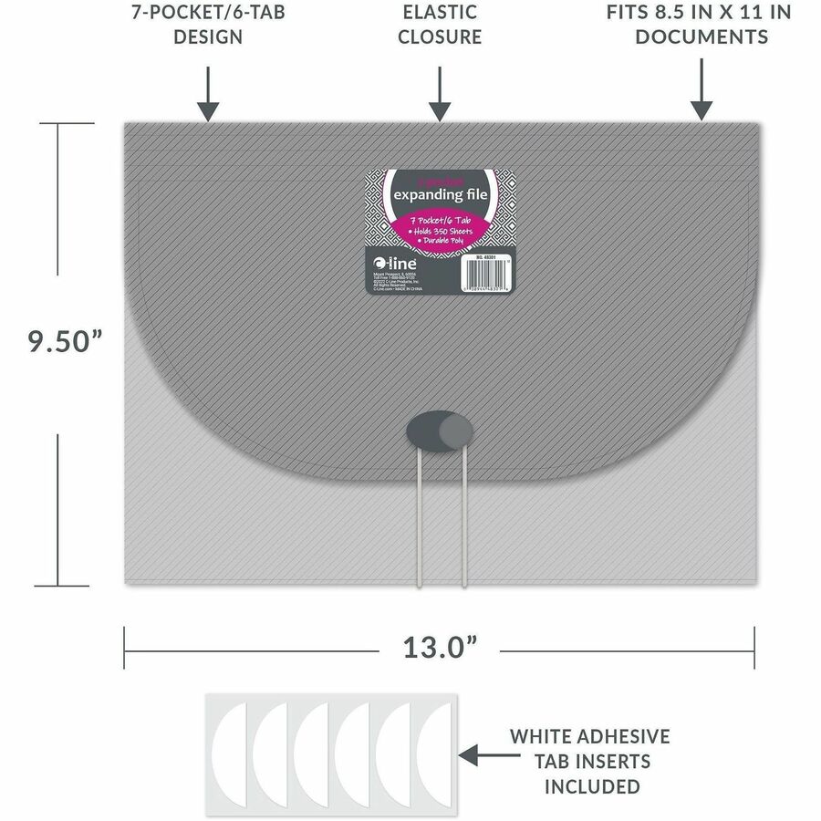 | Marketing Information | Expanding file is made of durable, acid-free, archival-quality polypropylene. Use seven pockets for letter-size document storage. File includes six write-on tabs and a button-elastic closure. |
