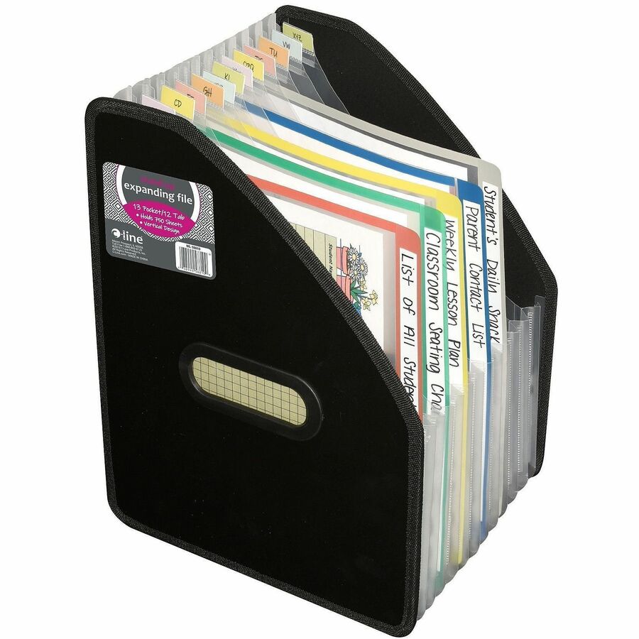 | Marketing Information | Take up less room on your desk by organizing papers, manuals, magazines and more vertically. This 13-pocket expanding file features a stand-up design for easy access and extra expansion. Cutouts on each side allow easy transport. File expands up to 10" wide to hold up to 750 sheets of paper or 26 magazines, catalogs, project folders, file folders and more. Divider tabs on top provide trouble-free organization. File is made from archival-quality polypropylene and includes preprinted tab inserts. |