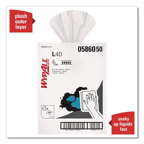 WypAll® is the number one brand of disposable wipes in the US and Canada. Maximize performance while minimizing time effort and product waste. If you're looking for an effective wipe to absorb liquids lightning-fast, WypAll® PowerClean™ L40 extra absorbent towels are just what you need. These wipes are made of bonded cellulose using DRC (double re-creped) technology for strength, softness and absorbency. As a wiping towel, it soaks up liquids fast - but all you and your staff will feel is softness, thanks to a plush, touchable outer layer. These utility wipes are specially designed to absorb liquids, lubricants and oils (in restaurants for wiping counters, in mechanic shops, industrial and commercial factories and more), yet they're soft enough for use on face and hands. Experience the difference in superior absorption and cleaning at your home or office today!