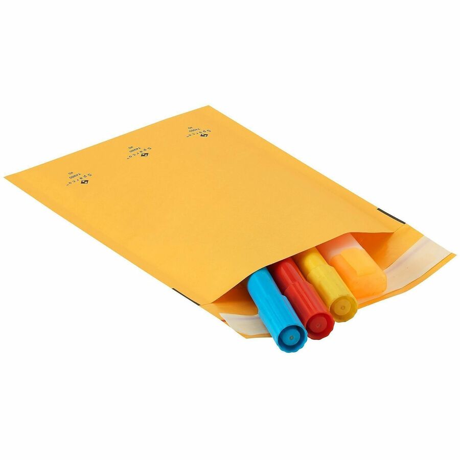 | Marketing Information | Cushioned mailers are made of durable, Kraft material to keep your contained items protected during transit. Lightweight design helps keep your shipping costs to a minimum. Self-seal closure seals your package quickly without requiring water or glue. Interior bubble cushioning ensures your items arrive without any damage. |