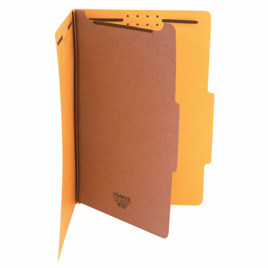 Color-code your filing with heavy-duty covers in vivid colors. Organize and subdivide materials with 2" capacity prong fasteners inside front and back 25 pt. pressboard covers. 1" capacity metal fastener on each side of 20 pt. Kraft dividers. Tear resistant reinforced gusset for added durability during expansion. |